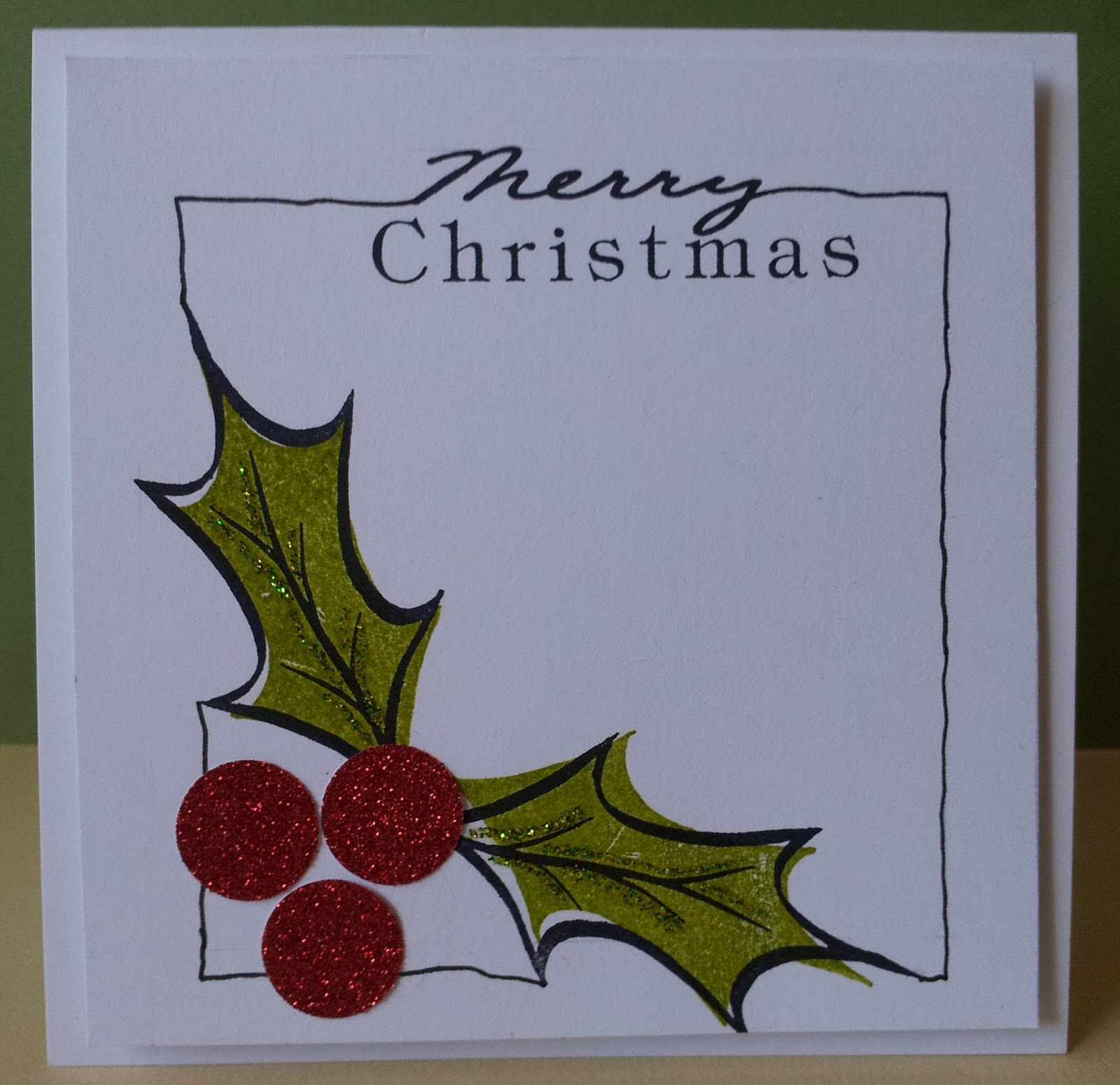 I've used a little leafy stamp in green on the frame and a second stamping for the inner frame to achieve a softer, "faded" look. I had quite a few goes at this before I got it right and just when I felt I'd got it right, I put the stamp ink side down on it by mistake and had to do it again, quite a few diecuts going in the bin!