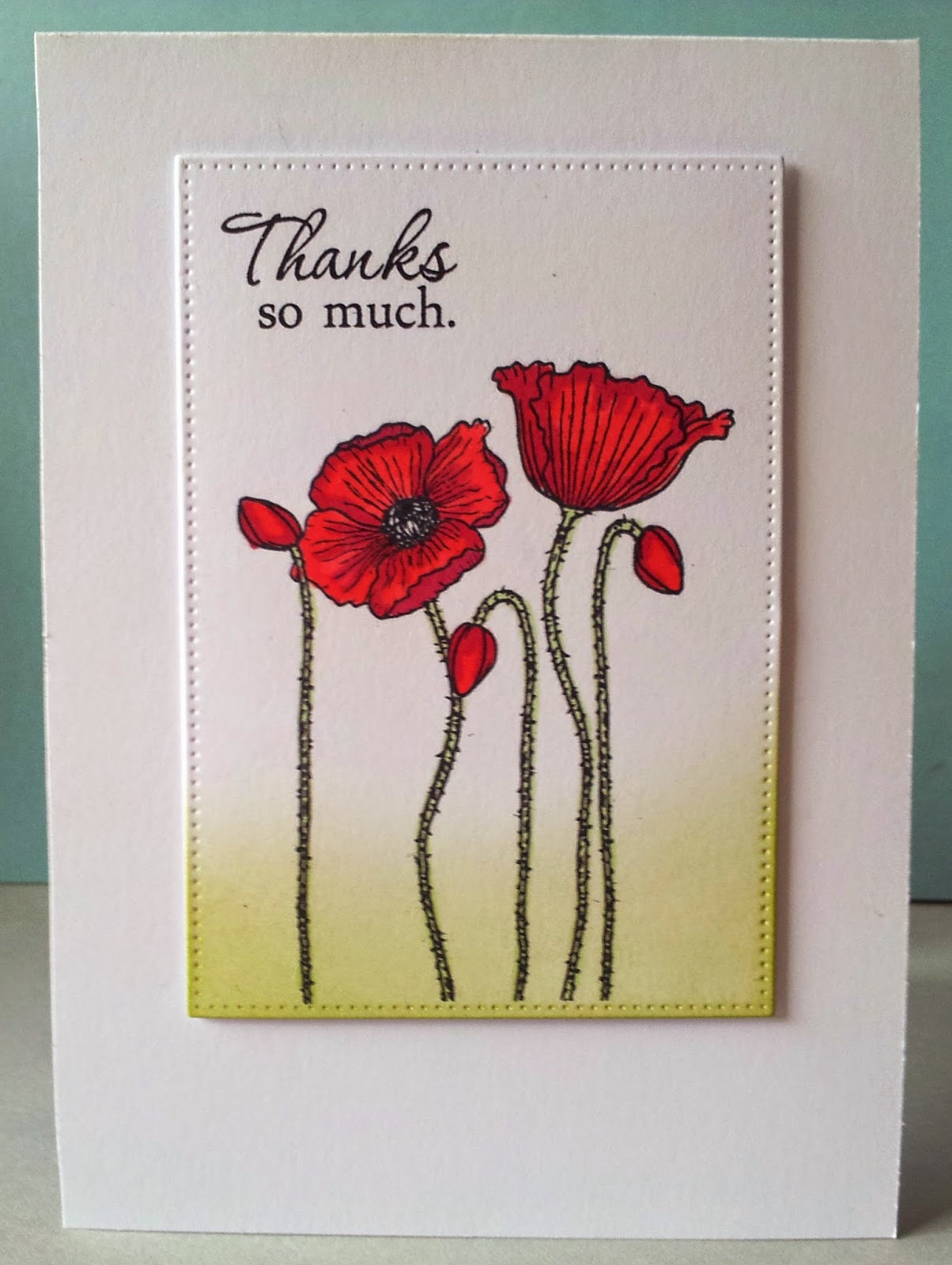 For my DT card, I stamped the poppies (Sweet N Sassy) in black Memento and coloured in with Promarkers.