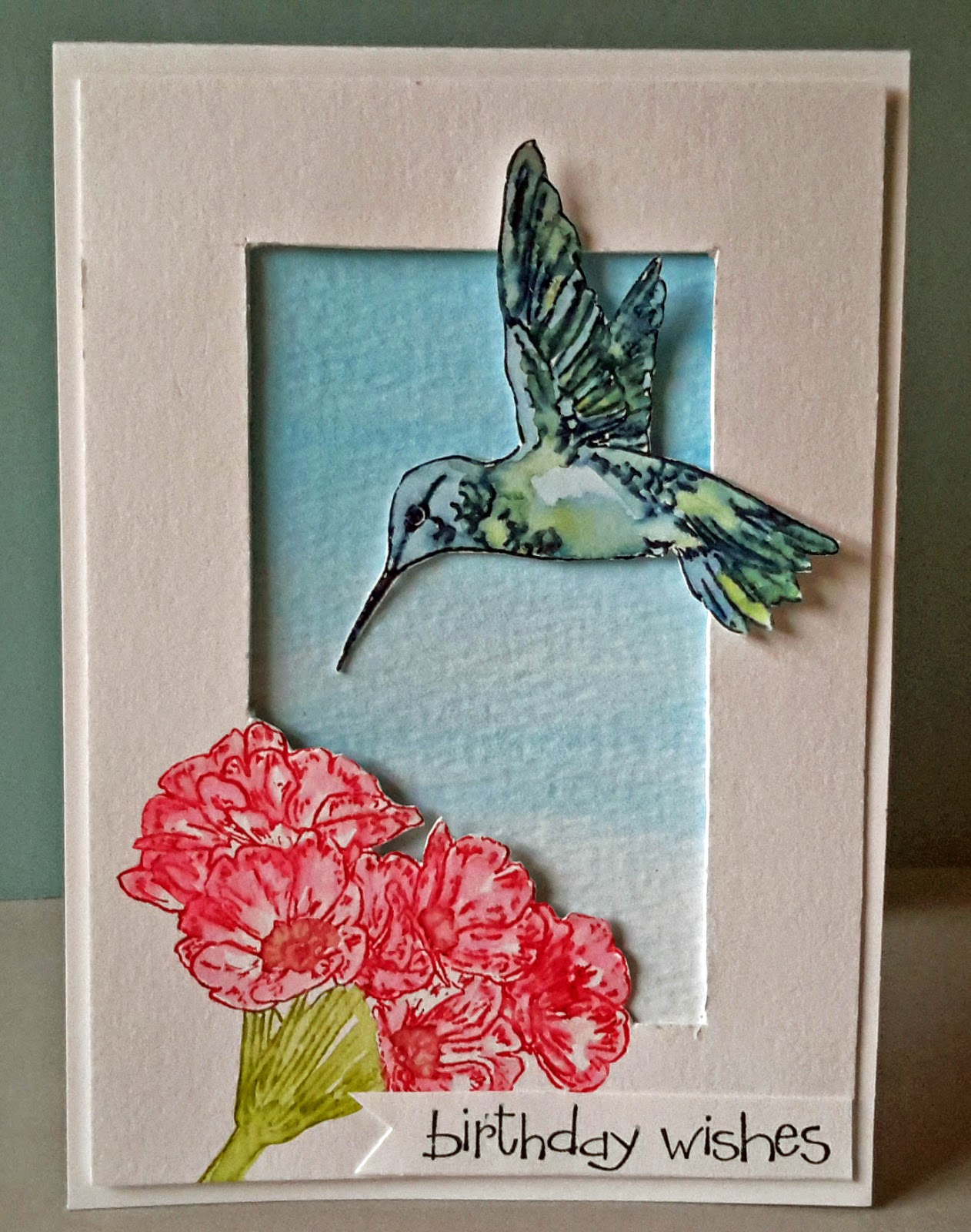 I wanted to use bright and cheery colours on my DT card and here it is. The butterflies and background were stamped and watercoloured with distress inks.