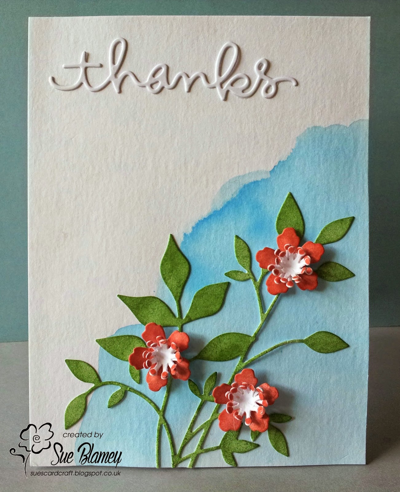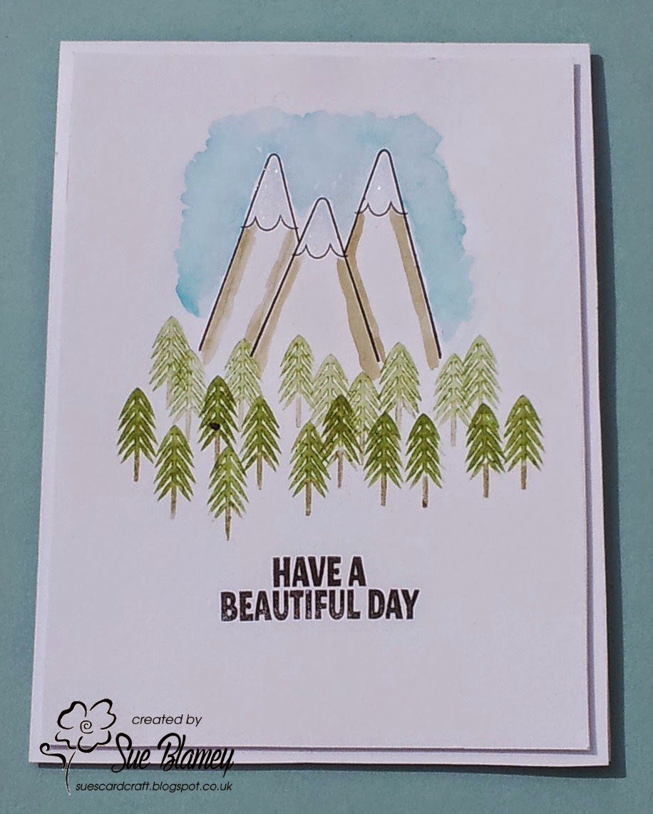 I brushed ink on using a cloud template for the bottom border, stamped the balloon and bird, coloured and cut out, and attached sun and clouds die-cuts.